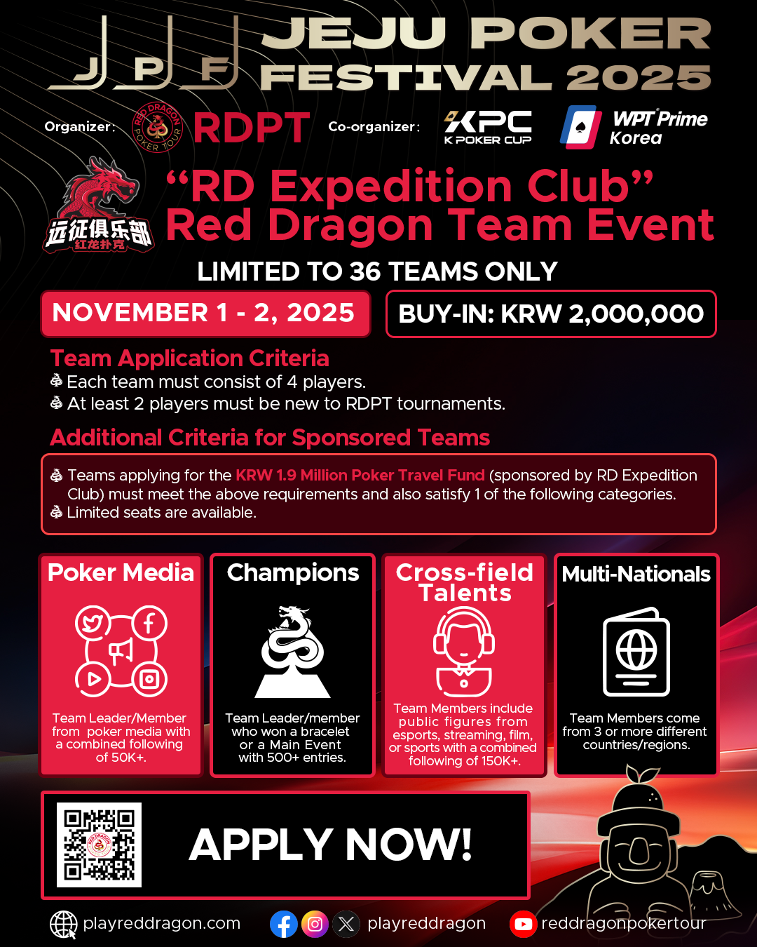 The Red Dragon Poker Tour (RDPT) is set to kick off 2025 in style with RDPT Jeju 2025 at the famed Landing’s Casino in Jeju, South Korea.